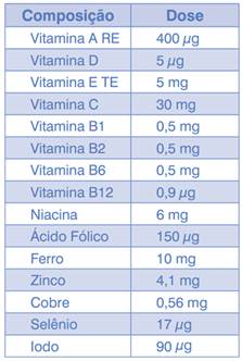 Composição do sachê de micronutrientes