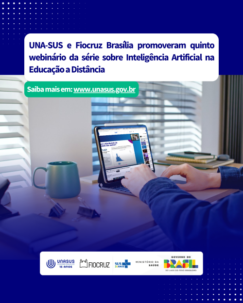 Este foi o quinto webinário da série que está sendo promovida ao longo do ano pela UNA-SUS. A sequência tem como tema “IA na Educação a Distância: Aprofundando o debate na Rede UNA-SUS” e tem o propósito de debater como essa tecnologia pode ser utilizada para apoiar o planejamento, produção e oferta de oportunidades educacionais na modalidade educação à distância, funcionando também como apoio a tutores e alunos.