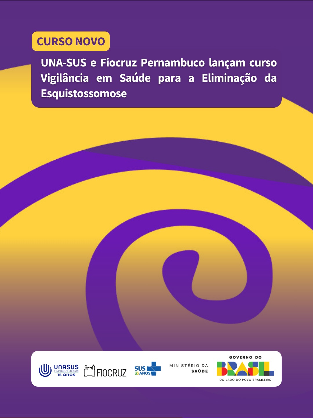 Estão abertas as matrículas para a primeira oferta do curso “Vigilância em Saúde para a Eliminação da Esquistossomose”. A iniciativa é fruto de uma parceria entre a UNA-SUS, a Fiocruz Pernambuco, a Secretaria de Vigilância em Saúde e Ambiente (SVSA), o Departamento de Doenças Transmissíveis (DEDT), a Coordenação-Geral de Vigilância da Hanseníase e Doenças em Eliminação (CGHDE) e o Ministério da Saúde.