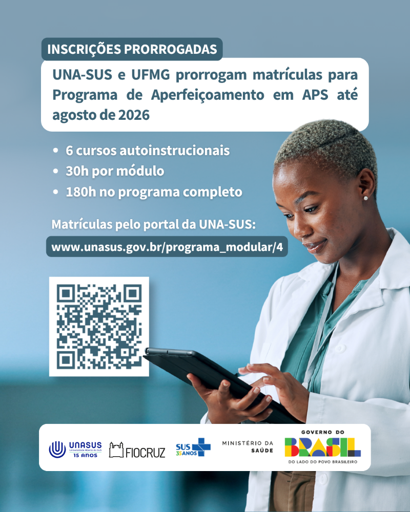 UNA-SUS e UFMG prorrogam matrículas para Programa de Aperfeiçoamento em APS até agosto de 2026
