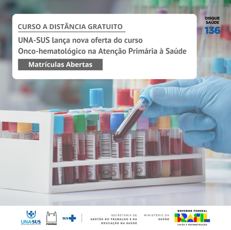 A capacitação desenvolvida pela Secretaria Executiva da UNA-SUS, em parceria com a Associação Brasileira de Linfoma e Leucemia (ABRALE), é ofertada por meio da Fiocruz Brasília.